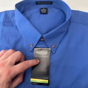 NWT Rivers End Shirt Mens XL Button Up Blue Short Sleeve Wrinkle Resistant