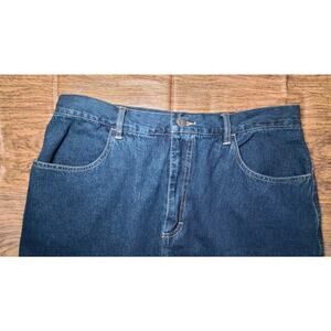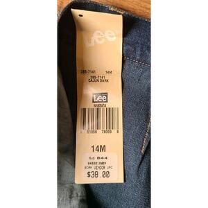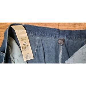 This is a new-with-tags denim maxi skirt by Riveted By LEE in size 14. It features a high waist with pleats, button and zipper accents, and a back slit. The skirt has a vintage style with American, hippie, bohemian, and other themes. It is made of 100% cotton denim, suitable for casual occasions in summer, fall, or spring. The skirt is machine washable and is in excellent condition.
