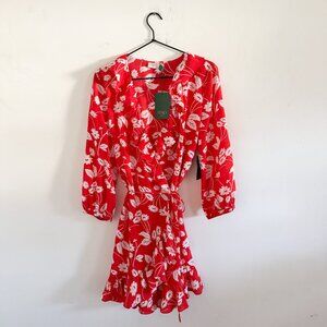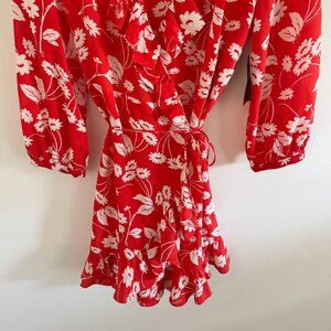 Item Description: Red floral Angela wrap 3/4 sleeve mini dress