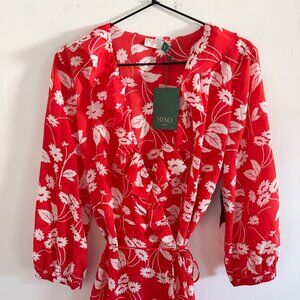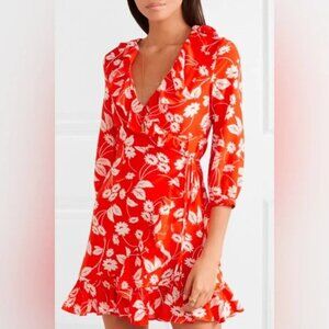 NWT Rixo Red Floral Silk Angela Wrap Dress XL