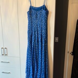 Gorgeous maxi dress! Perfect unique wedding guest option from popular label RIXO. Unworn and new with tags! Originally purchased from Anthropologie. I thought I was going to wear it so I had the straps permanently sewed on as the hook attachment was a bit flimsy, but then I went in another direction for my event. The straps could definitely be removed by a tailor.