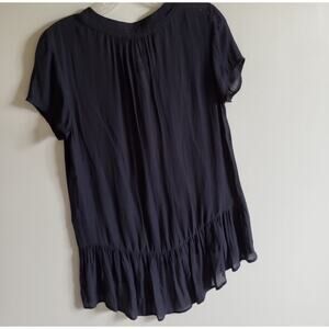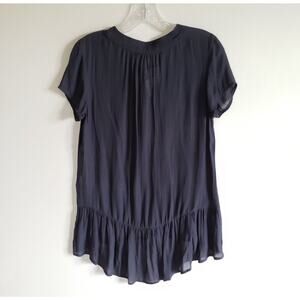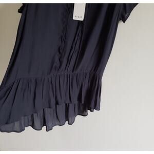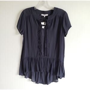 NWT Ro & De Navy Hi Low Ruffle Tie Neck Top. Size xs.