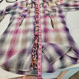 NWT! Roar Native Song Shirt Medium Plaid Embroidered Rhinestone Western Purple
