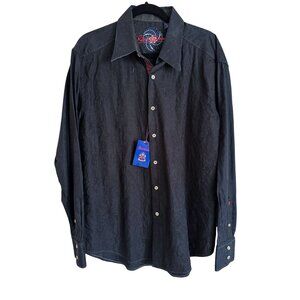 NWT Robert Graham Men's Long Sleeve Button Up Textured Black Shirt Size XL