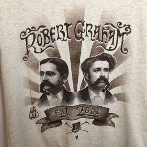 New with tags Robert Graham Movember 2016 color is Heathered oatmeal graphic tee with great graphic print. Reminds me of the old west and Wyatt Earp. Measurements in photos. No flaws. Check out my Poshmark closet as I do an automatic discount on all bundle orders of two or more items. Bundle and save!