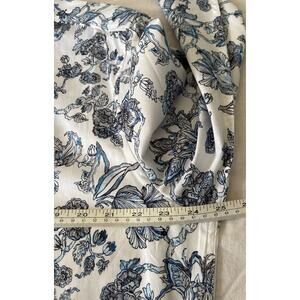 The NWT Robert Graham Sea Bloom Shirt in Men's XL is a classic and stylish button-up featuring a beautiful white and blue floral pattern. Made from a comfortable cotton blend fabric, this shirt is perfect for casual occasions and can be worn year-round. The collared neckline and long sleeves add a touch of sophistication, while the woven fabric gives it a high-quality feel. With a classic fit and point collar style, this shirt is a versatile addition to any man's wardrobe.