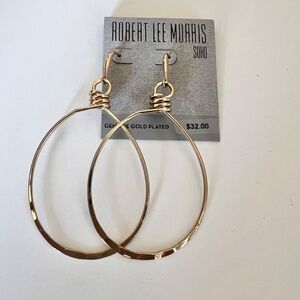 NWT Robert Lee Morris Soho 14K Gold Plated Hammered Large Drop Earrings