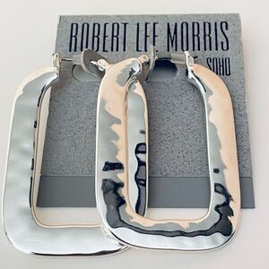 NWT Robert Lee Morris Soho Large Square Silver Polished Hammered Hoops earrings