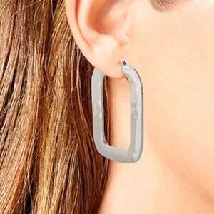 Silver Hammered Highly Polished Shinny Gorgeous Silver Square / Rectangles Long Hoop earrings