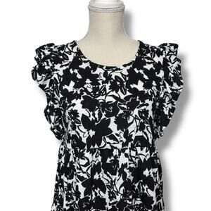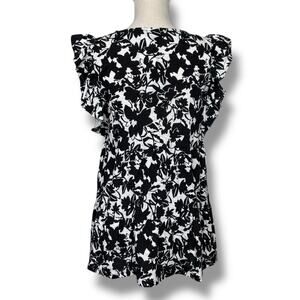 NWT Robert Louis Black & White Top with Ruffle Sleeve Size Medium