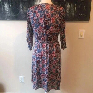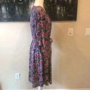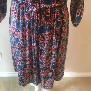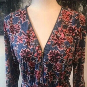 NWT Robert Louis Blue Floral Adjustable Sleeve Zip V-Neck Flare Midi Dress M
