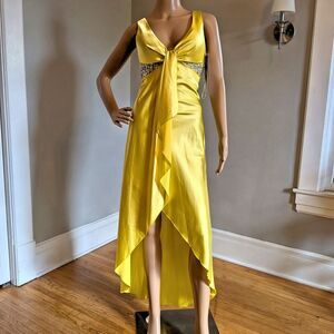 NWT Roberta Yellow Silky Prom Gown, Sequin Beaded High/Low, Size 5/6