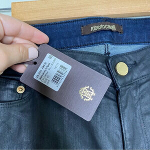✨NWT Roberto Cavalli Black Blue Mid Rise Coated Skinny Jeans Women's Size 6