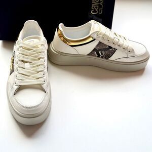 NWT Roberto Cavalli “Cavalli Class” logo hardware white low top sneaker Size 38
