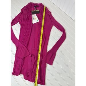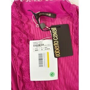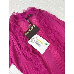 NWT Roberto Cavalli Knitwear Fuchsia Ribbed Open Cardigan Loungewear Topper Sz L