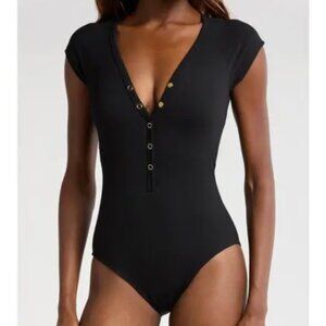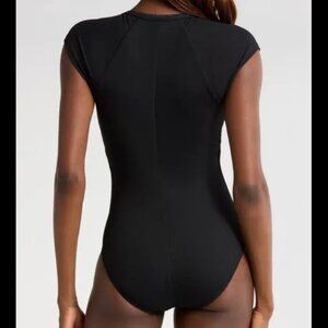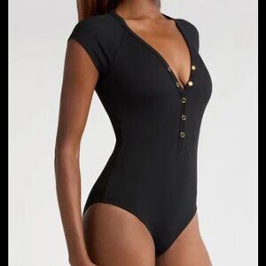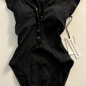 NWT Robin Piccone Amy Raglan Sleeve One Piece Swimsuit in Licorice Size 4