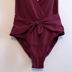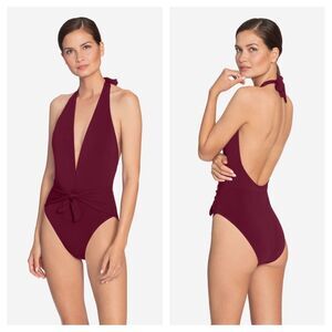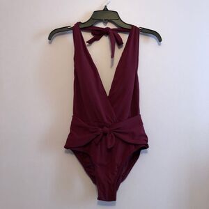 NWT Robin Piccone Halter Neck One Piece Swimsuit Size 4 Burgundy Resortwear