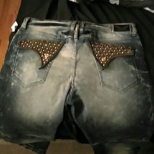 Size 40 slim leg from Saks Fifth Avenue for 500, only tried on as you can see plastic is still on the metal tag. It's a good fit even for 40, I usually wear 32-34w with true religion and these fit and feel better. No rush to sell, and the boutique stamp is on the pocket to prove authenticity "sak20"