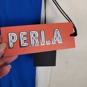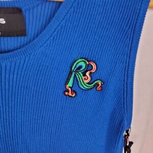 NWT Rochas Paris Blue Ribbed Logo Tank Top Size XL Designer Luxe Minimalist