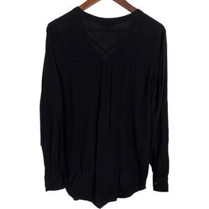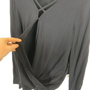 NWT Rock & Republic Black Surplice Criss Cross Strappy Long Sleeve Blouse Women's Medium