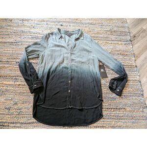 NWT Rock & Republic Ombré Button Up Shirt Blue L Dip Dye L/S Crinkle Sh