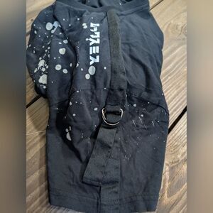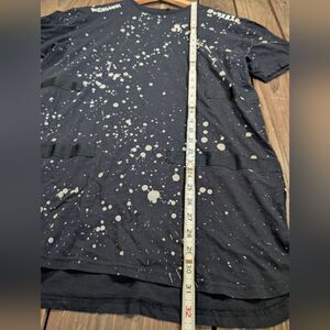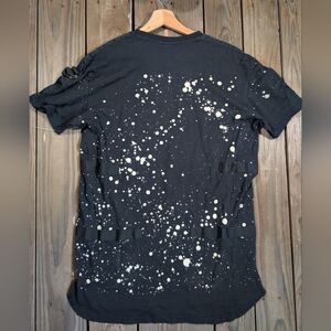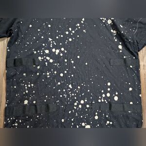 Black splatter T-Shirt with detailed designs and adjustable sleeves.