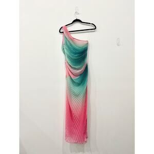 NWT Rococo Sand Luca One Shoulder Pleated Cocktail Maxi Dress Ombre Women's M