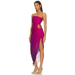 NWT Rococo Sand Pleated Asymmetric Long Dress Side Cutout Pink Purple Size Large