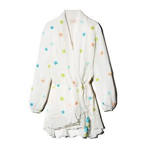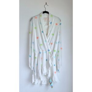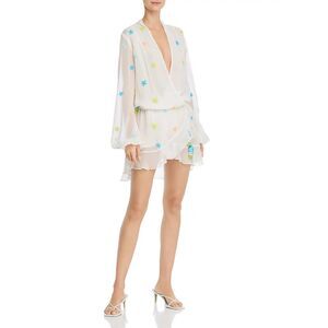 NWT Rococo Sand Sequined Star Women's Chiffon Wrap Dress in White Size XS