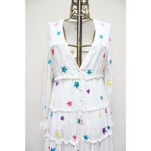 NWT Rococo Sand Stellar Sequin Star White Maxi Tiered Silk Dress Size XS