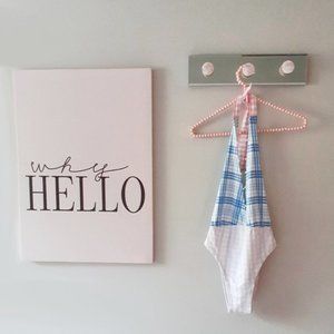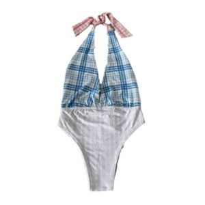 NWT Rococo Sand printed blue & white beaded accent halter one piece swimsuit