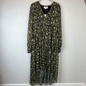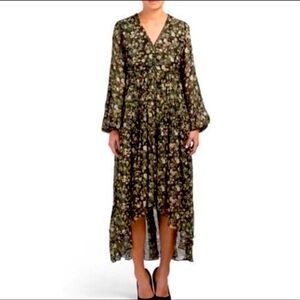 NWT Rococo Sand Flora Floral Handmade High Low Maxi Metallic Thread Dress Large