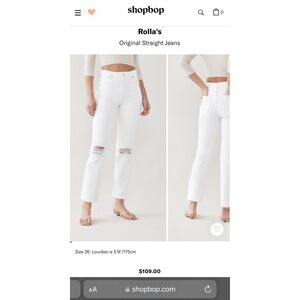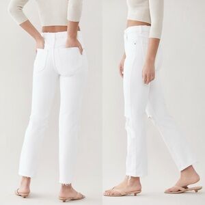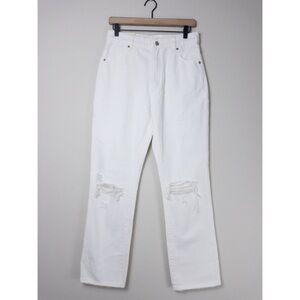 NWT Rollas Original High Rise Straight Jean 28 Layla White Distressed Knee Rip