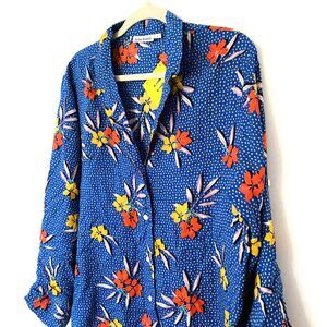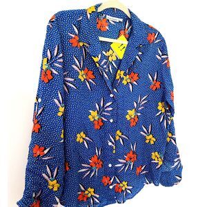 NWT Roller Rabbit Blue Kori Floral Nyana Tropical Rolled Up Sleeve Shirt Sz S