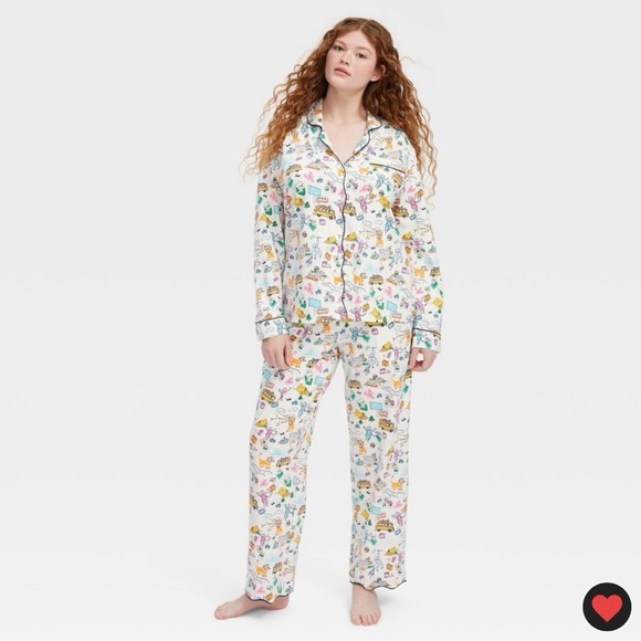 Women's Roadtrip Long Sleeves and Pants Pajama Set Blue/Yellow/Pink