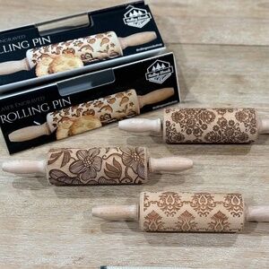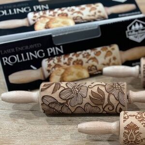 NWT Rolling Woods Artist Hand crafted Laser Engraved Rolling Pins, Set of 3