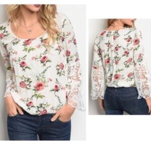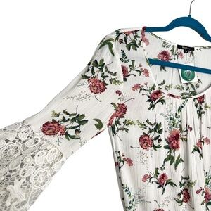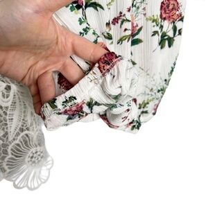 NWT RolyPoly Floral Lace Bell Sleeve Crinkle Rayon Blend Blouse