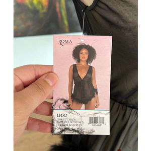 NWT Roma Low Cut Mesh with faux fur trim and satin tie size M