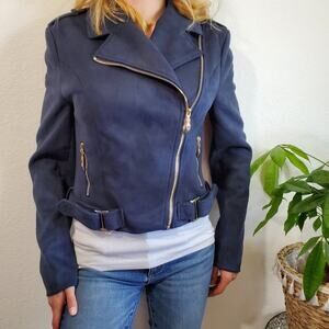 NWT Romeo & Juliet Couture Navy Faux Suede Jacket Size Small