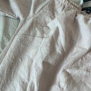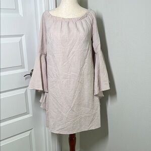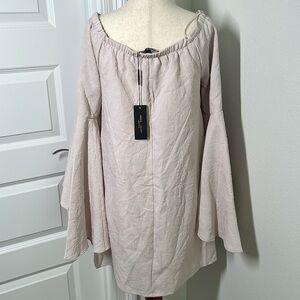 Make a statement in this brand new with tags Romeo & Juliet Couture off-shoulder dress in a dreamy dusty light pink hue. Designed with romance in mind, this dress exudes elegance and charm.