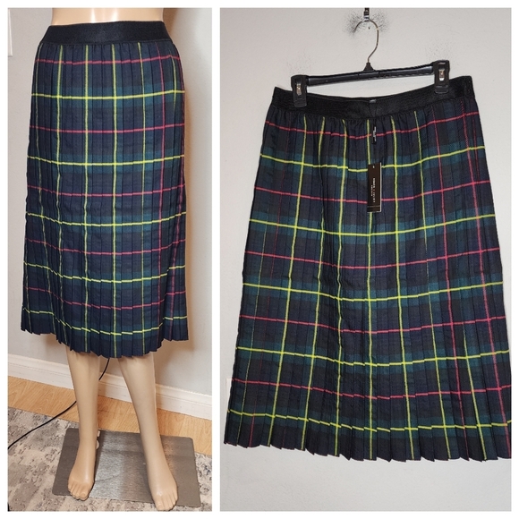 NWT Romeo & Juliet Couture Pull On Twill Pleat Tartan Plaid Skirt Holiday Large