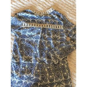 Beautiful long sleeve crochet romper with a blue paisley pattern, NWT!! Has buttons at the end of the sleeves if you wish to roll them up ๐๐ธ๐