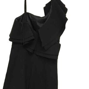 Elevate your wardrobe with this stunning one-shoulder jumpsuit from Topshop. The solid black color, ruffle detailing, and polyester blend material make it the perfect addition to any event or occasion. This one-piece jumpsuit is a size 6 and comes with tags still attached.