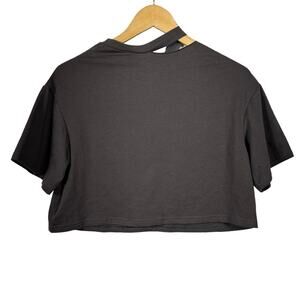 Dark grey, boxy fit style cropped top with anime girl graphic