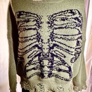 NWT Romwe Distressed Light Green Grunge Rib Cage Sweater XL