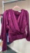 NWT Ronny Kobo Monet Blouse Small Purple Wine Satin Draped Long Sleeve Slit Back