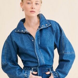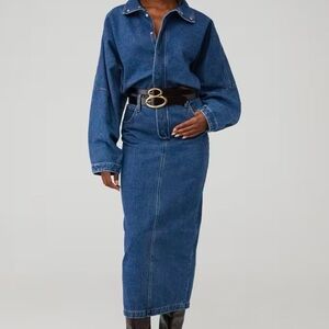 NWT Ronny Kobo Sebastian Denim Point Collar Neck Long Dolman Sleeve Midi dress
