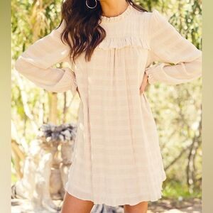 NWT Roolee Chiffon Ruffled Long Sleeve Babydoll Dress Vanilla Cream Size Medium