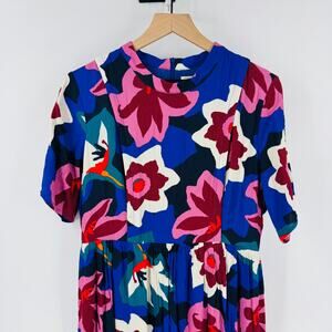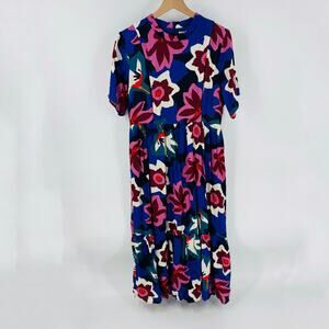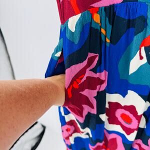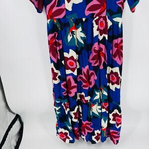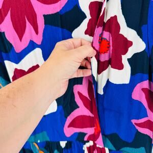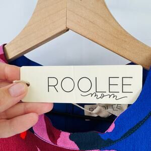 Brand new with tags Roolee Mom dress in a bold, oversized floral print with shades of pink, burgundy, cream, and blue. Features a modest crew neckline, short sleeves, and hidden zippers for nursing access. Relaxed fit with gathered waist and tiered midi-length skirt for comfort and movement. Women’s size Large. Nursing-friendly design makes it perfect for new moms while remaining stylish and versatile.