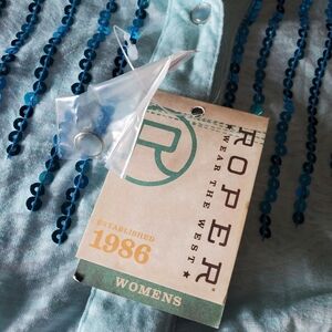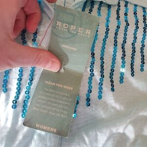 NWT Roper Blue Sequin Pearl Snap Button Down Shirt Women's Size XL